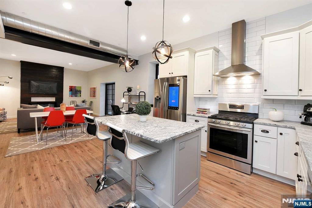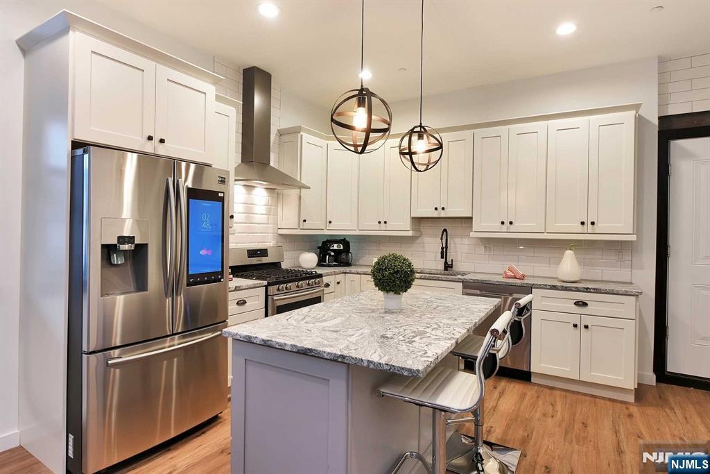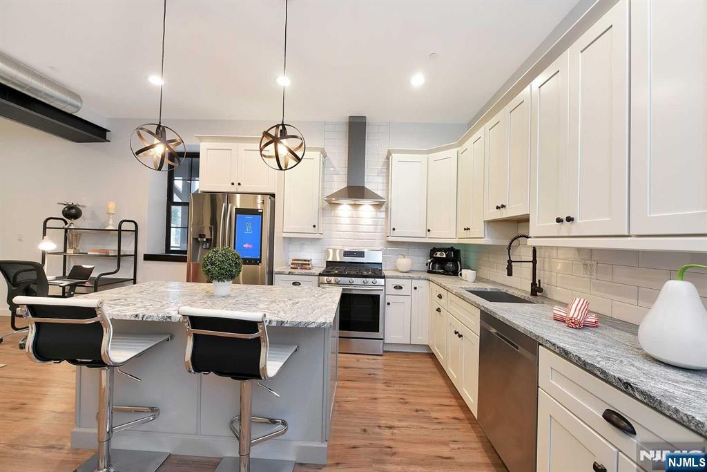Welcome to Cast Iron Lofts- converted firehouse; built to a very hi standard Close to everything! Spacious, 2-bed, 2-bath Lux Loft w/ hi ceilings, brick walls, W/D, huge deck + garage. The unit features a large open LR/DR and amazing Kit w/ stone counters, island w/ seating, all new SS Samsung appliances including a smart fridge, DW, gas range, prof exhaust hood and microwave in island. A W/D, FP and more off-street parking complete this luxurious respite. Located in the center of Caldwell close to everything: Movie Theater, Restaurants, Parks, NYC transport, shopping, Up to 2 Pets ok w/ pet interview, size restrictions + pet rent.