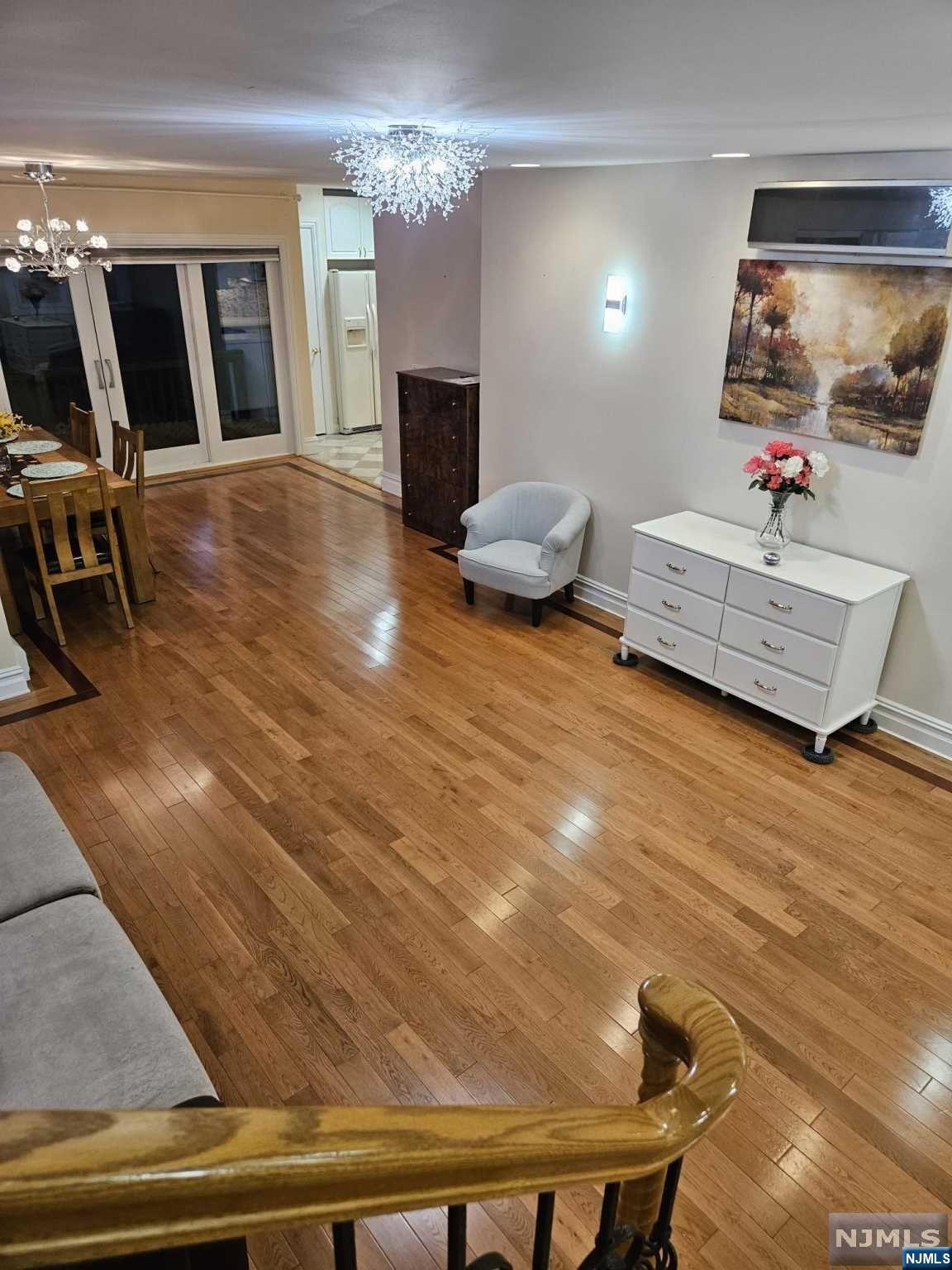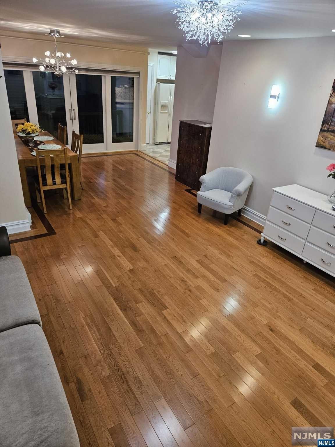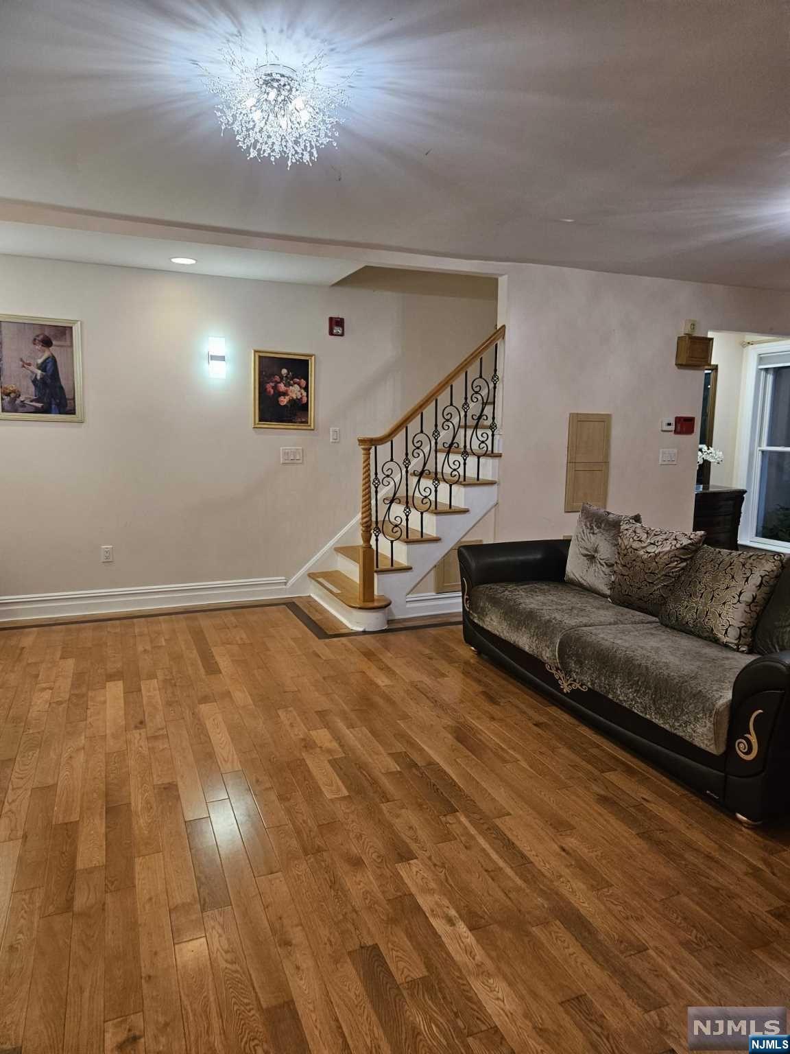 Discover your ideal living space in this stunning, fully furnished 2-bedroom, 2-bathroom duplex with a private entrance and a huge deck located in the highly sought-after residential neighborhood of Bergenfield. Just unpack and relish the stylish, beautiful furnishings and the seamless open floor concept, highlighted by quality hardwood floors, ample windows, and skylights bathing the rooms in natural light and fresh air. The first floor offers a spacious living room, dining area, large bedroom, full bath, and a kitchen with the sliding door leading to an expansive deck. Upstairs, you'll find a master bedroom with cathedral ceiling and full bath with jacuzzi tab. Step outside to enjoy the front yard for barbecues and relaxation. NYC bus stops, restaurants, and shops within walking distance. Washer/dryer is located in the basement. (landlord uses one day per week) Tenant is responsible for all utilities. The furniture can be removed. Call Inna 201-873-8551.