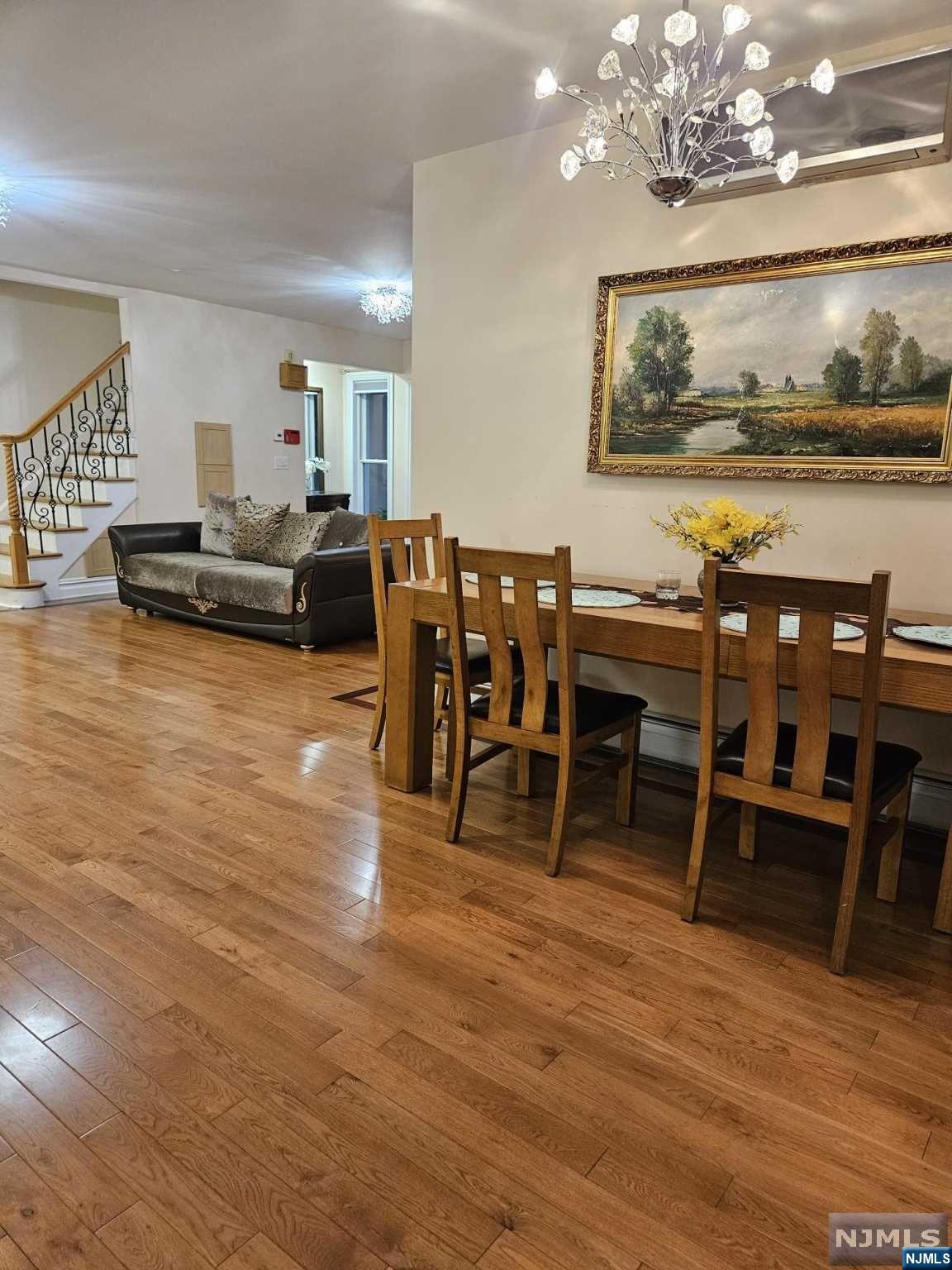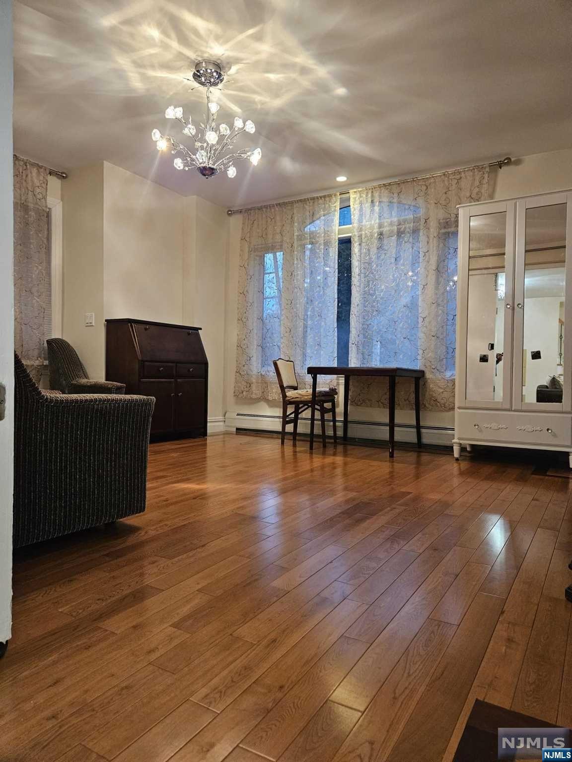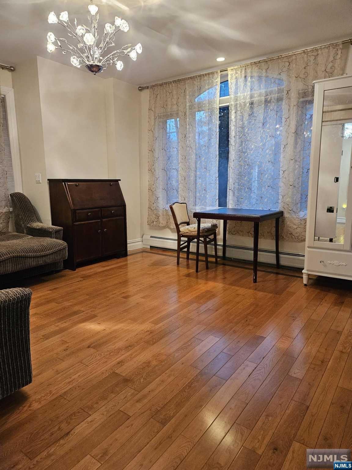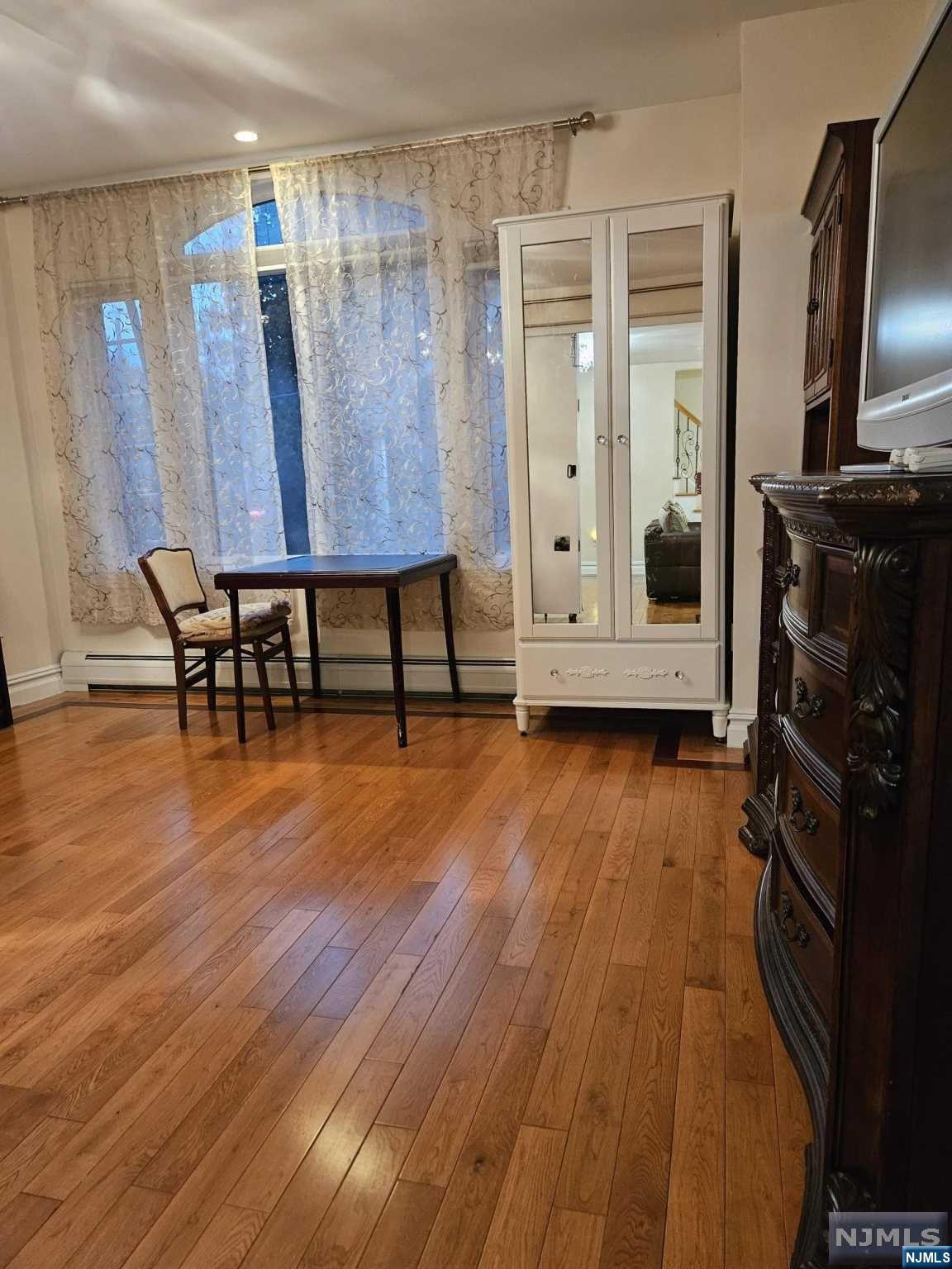 Discover your ideal living space in this stunning, fully furnished 2-bedroom, 2-bathroom duplex with a private entrance and a huge deck located in the highly sought-after residential neighborhood of Bergenfield. Just unpack and relish the stylish, beautiful furnishings and the seamless open floor concept, highlighted by quality hardwood floors, ample windows, and skylights bathing the rooms in natural light and fresh air. The first floor offers a spacious living room, dining area, large bedroom, full bath, and a kitchen with the sliding door leading to an expansive deck. Upstairs, you'll find a master bedroom with cathedral ceiling and full bath with jacuzzi tab. Step outside to enjoy the front yard for barbecues and relaxation. NYC bus stops, restaurants, and shops within walking distance. Washer/dryer is located in the basement. (landlord uses one day per week) Tenant is responsible for all utilities. The furniture can be removed. Call Inna 201-873-8551.